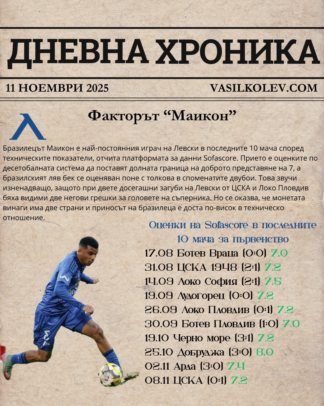 - Агентите на Маикон идват за преговори с ръководството на Левски, което иска да предложи нов дългосрочен договор на бразилеца, който да включва и солидно увеличение на месечната му заплата. „Тема Спорт“ припомня, че испанският вестник „Ас“ тъкмо информира за интерес на Бетис към левия бранител.