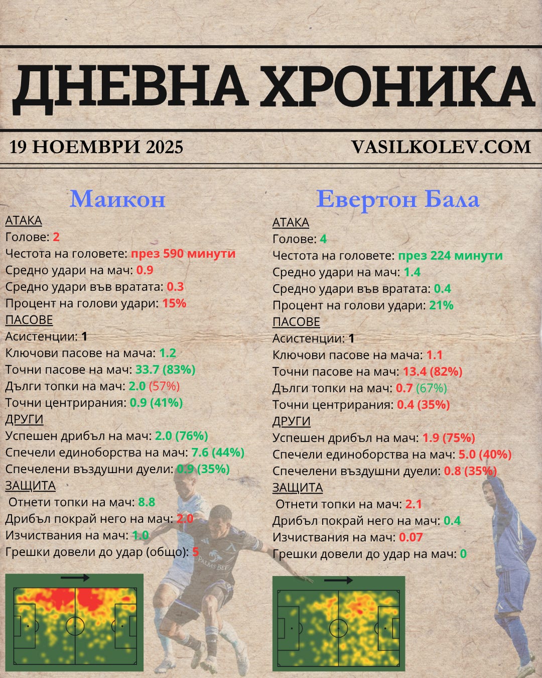 Кой да замести Ради Кирилов на лявото крило? Отсъствието на национала на България срещу ЦСКА се оказа един от ключовите фактори за загубата на Левски. Сега вариантите са Маикон и Евертон Бала. Но дали везните наистина натежават към първия? Ето го и статистическият анализ: