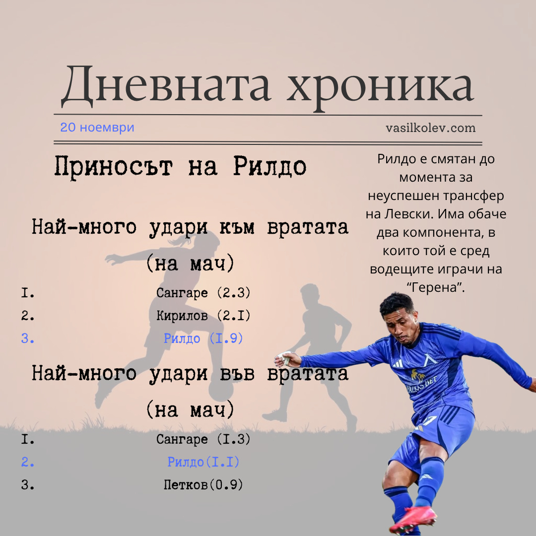 - Бащата на Рилдо е в България и му помага с допълнителни тренировки. Бразилецът се надява да намери титулярно място, независимо че започна по неубедителен начин в Левски.