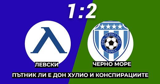 Мачът с Черно море беше много по-различен от предишните, защото този път масово феновете на Левски са ядосани. Треньорът Веласкес е на мушката на медии и зрители и вече сякаш изглежда с произнесена присъда, макар че тя идва от Наско Сираков, който мълчи. Но пък има и много конспирации, свързани с „обръщалка“, един любим термин на родната футболна публика и съдийски заговор. В тази нервна ситуация три са традиционните полемики, които избирам за мача: