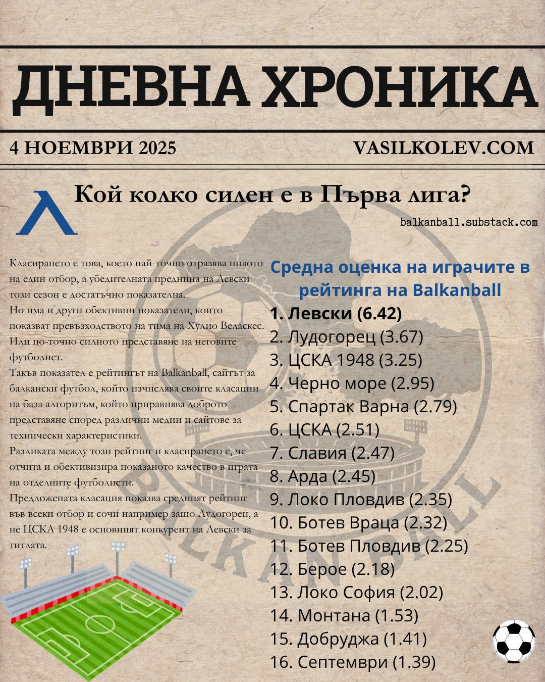 - „Най-важни в Левски са защитниците и вратарят“, твърди легендарният футболист на „сините“ Войн Войнов. За съперника той казва, че „големият проблем на ЦСКА е липсата на изграден стил и избистрен състав“.