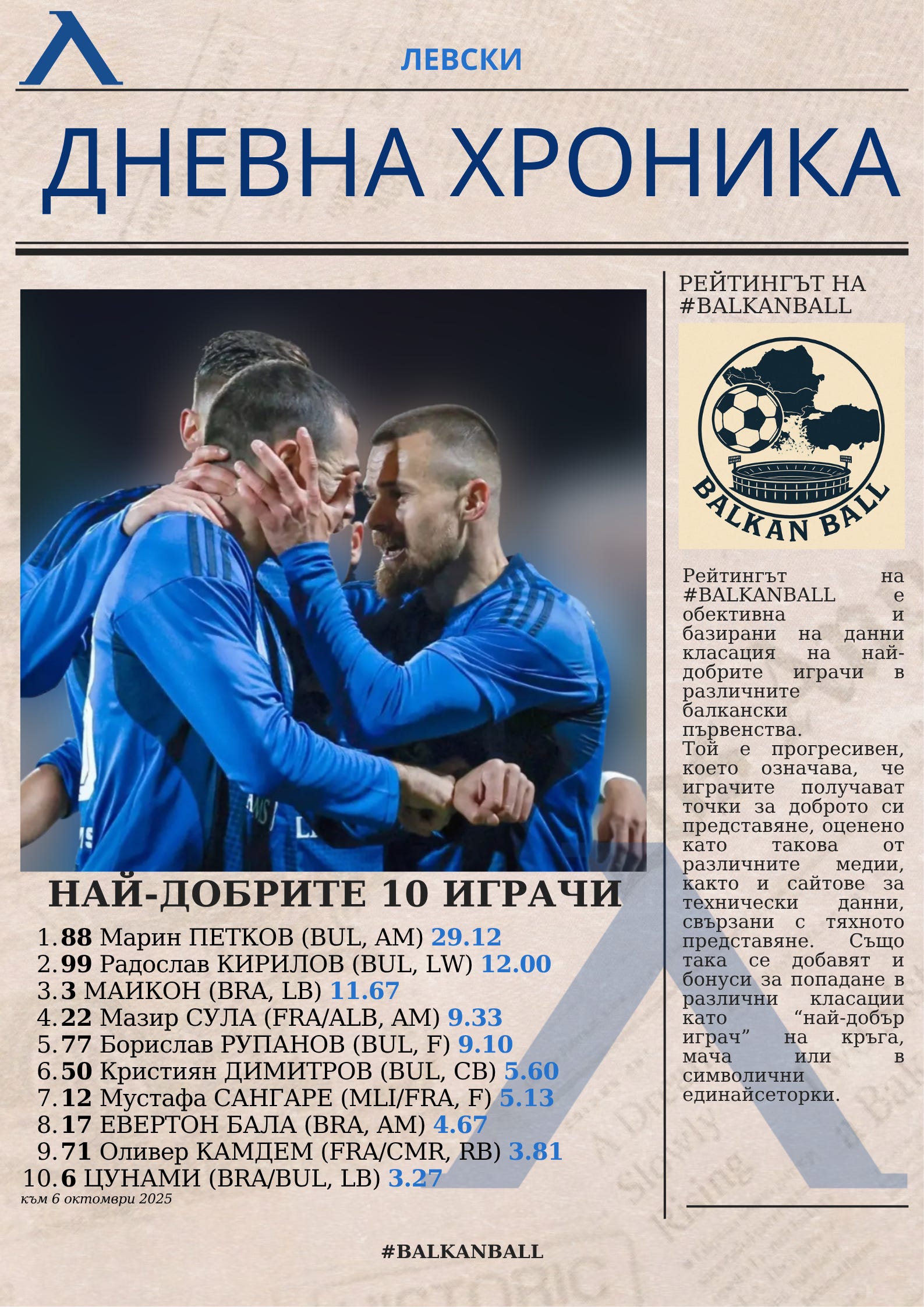 Новата рубрика ще можете да намирате на vasilkolev.com всеки ден от понеделник до петък. Тя ще съдържа обобщение на най-важните новини за деня, мачове, коментари, исторически факти и инфографики.