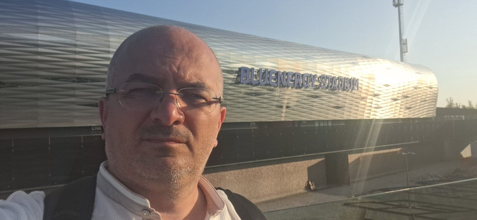 „Блуенерджи Стейдиъм“ е новото и модерно име на някогашния „Фриули“, една от арените на Мондиал 1990. Там е играл и Левски, да не казвам, че е записал един от най-хубавите спомени по време на синята приказка. Запомнил съм го с това, че прилича на днешния „Васил Левски“ – седалки в същия зеленикаво-син цвят, разлята чаша на стадиона по същия начин и атлетическа писта, както и оцветените в жълто пътеходи. Картината се е попроменила, защото е претърпял реновация между 2013-2016 и днес има шарен вид с нови седалки наредени хаотично в цветово отношение, трибуните са до пистата и даже човек може да си помисли, че това е нов стадион, нещо, което е почти невъзможно в Италия (като изключиш Ювентус!). Местните казват, това бил един от „най-устойчивите“ стадиони в света, каквото и да значи това, когато говорим за стадиони.